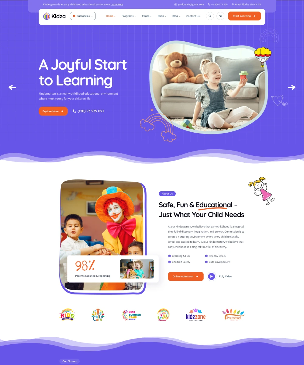 "This kindergarten has exceeded all our hopes. The warm, dedicated staff immediately helped my child feel at home and enthusiastic about learning. I'm amazed at how much his social skills."